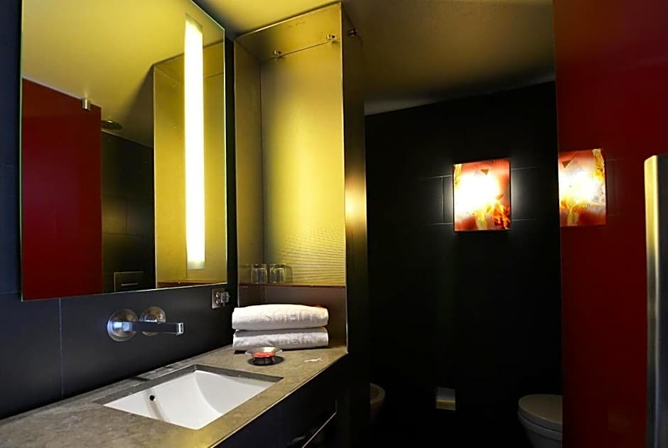 This air-conditioned room features an unique décor with tinted glass panels and controlled lighting. It comes with a LCD-screen TV, a mini-bar and free Wi-Fi connection. It also has a private bathroom with toiletries and hairdryer.